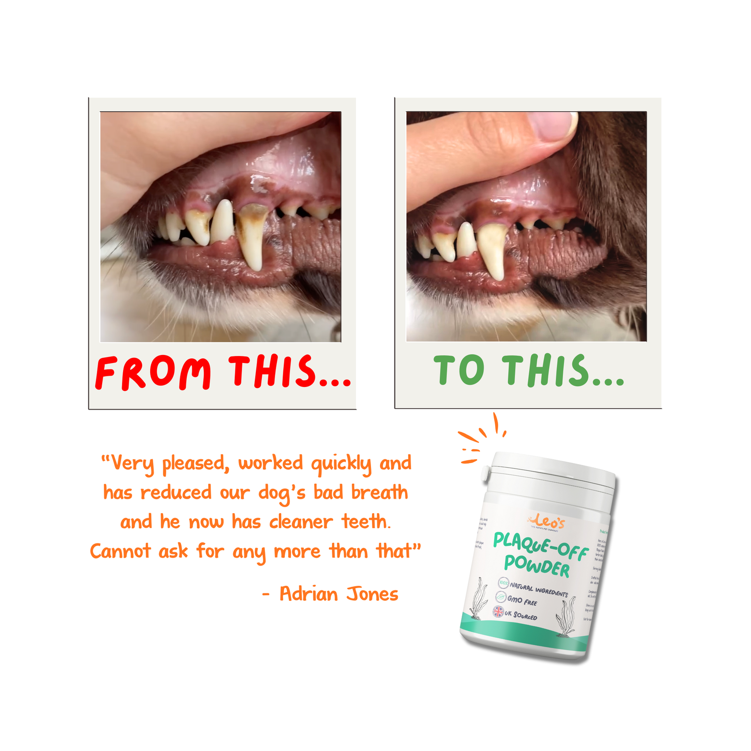 “Best plaque remover I’ve used to date. My recently adopted rescue doghad very bad plaque, a week and a half of using this, the plaque came away very easily on the two canines which were particularly bad, the back molars are completely clean. Would strongly recommend. My Vet will be impressed.”