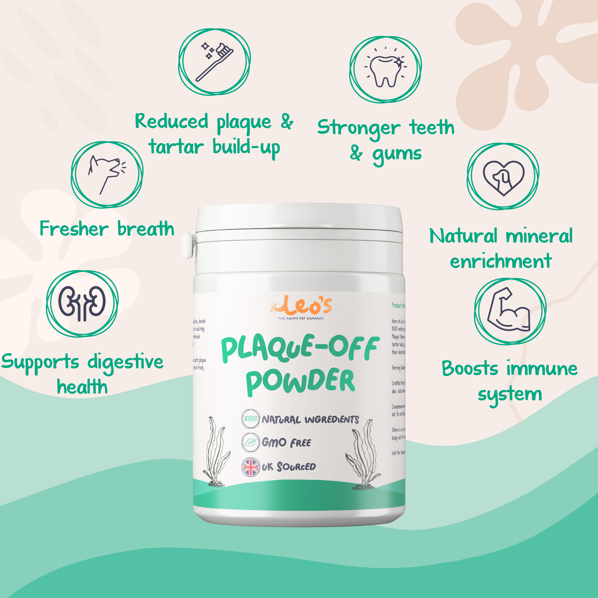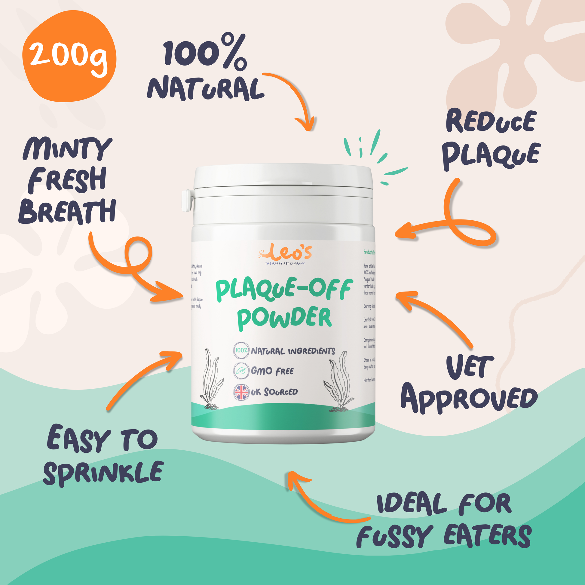 Keep your pet’s teeth clean and breath fresh with our Plaque Off Powder, a natural and easy way to support oral health.